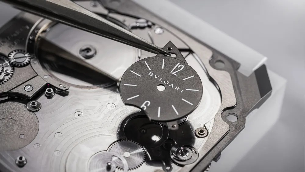 At a mere 1.50mm in thickness, the Octo Finissimo Ultra COSC is poised to claim the title of the thinnest mechanical watch ever created. This remarkable achievement was realized by ingeniously arranging all components onto a single plane, eliminating the need for multiple layers and maximizing space efficiency. In a departure from tradition, the watch features two sleek horizontal knobs in place of conventional winding crowns, further enhancing its streamlined aesthetic.