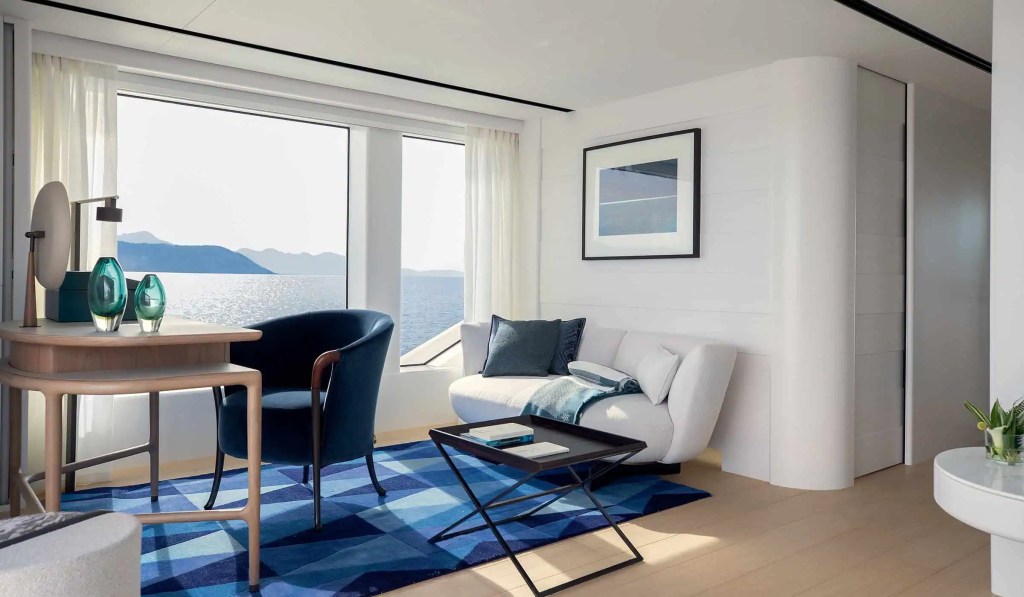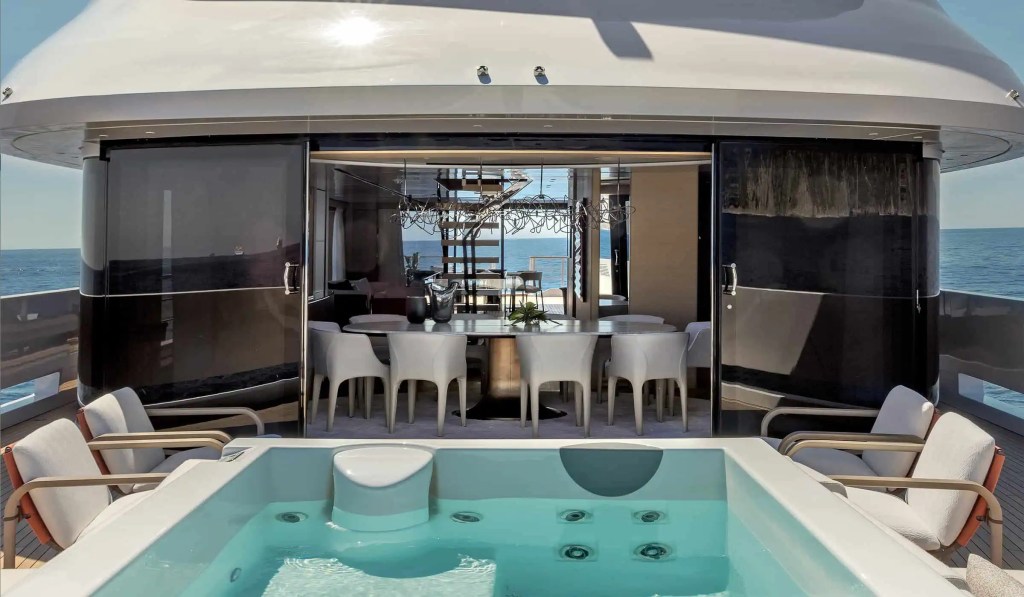 The main and the bridge decks, specifically reserved for the owner and the guests, boasts sweeping suites that offer panoramic ocean views. The upper deck, however, acts as a central socializing hub, featuring an open-air lounge and multiple floor-to-ceiling windows that offer serene views extending beyond the horizon.