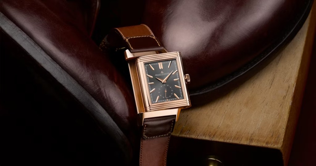 The case’s polished surfaces catch the light beautifully, while brushed elements create a harmonious contrast that emphasizes the watch’s clean and modern look. The iconic rectangular shape, combined with these Art Deco elements, makes the Reverso instantly recognizable, even from a distance.