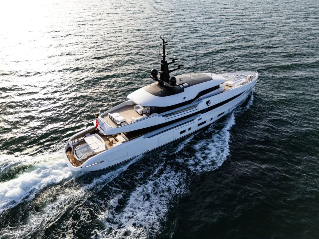 Mangusta’s Oceano 44 impressed visitors with its forward-thinking design. This 44-meter yacht is built for long-range cruising and offers stunning features like a transparent-bottom pool and a beach club with fold-out terraces, creating a seamless connection with the sea.