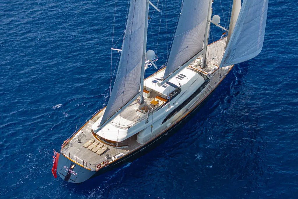 The 56-meter Fidelis, built by Perini Navi, is a classic sailing yacht that offers luxury with a side of adventure. Its elegant interiors and impressive voyage history, from Australia to the Amazon, make it a true explorer’s dream.