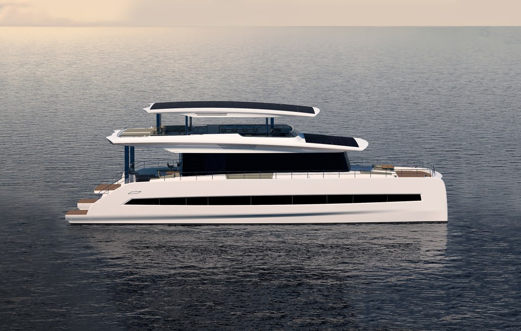 The Silent 80, a solar-electric catamaran, showcased a glimpse into the future of yachting. Known for its eco-friendly credentials, this yacht features a solar array capable of powering all on-board systems, including its electric propulsion, highlighting the growing trend toward sustainability.