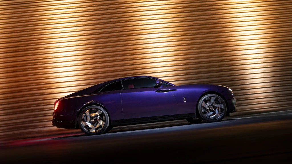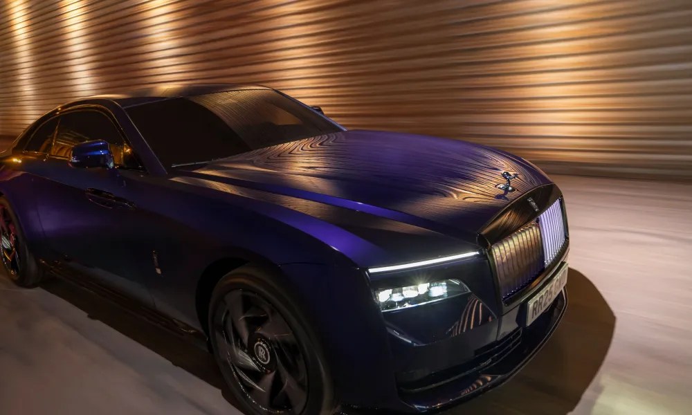 Beyond raw power, the Spectre Black Badge exudes an aesthetic designed for those who demand exclusivity. Signature blacked-out chrome accents, unique 23-inch wheels, and a bold yet sophisticated stance elevate its visual appeal. A new Vapor Violet exterior color, complemented by an Iced Black hood, adds to its distinctive presence. The lower body showcases the signature ‘waft’ coachline, further accentuating its elegance. Inside, the piano-black dashboard is adorned with over 5,500 illuminated stars, creating a celestial ambiance that epitomizes Rolls-Royce’s meticulous craftsmanship.